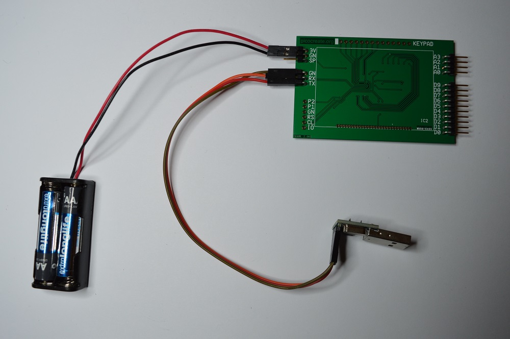 Power for the Nime Computer comes from a separate 3v power supply. In this guide, a small battery back containing two AAA cells are used.