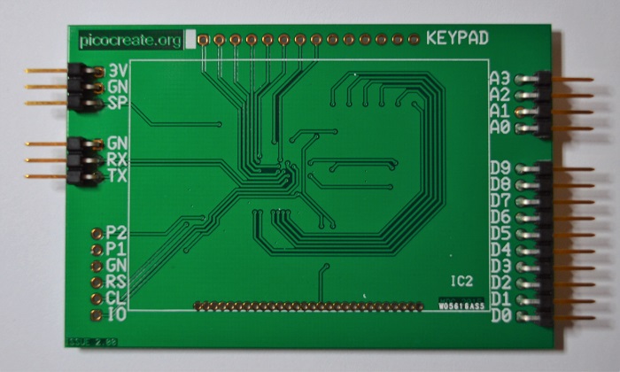 The headers on the right-hand side provide electrical connectivity to the outside world and provide and analogue port with 4 inputs and a digital port with 10 general purpose inputs and outputs.